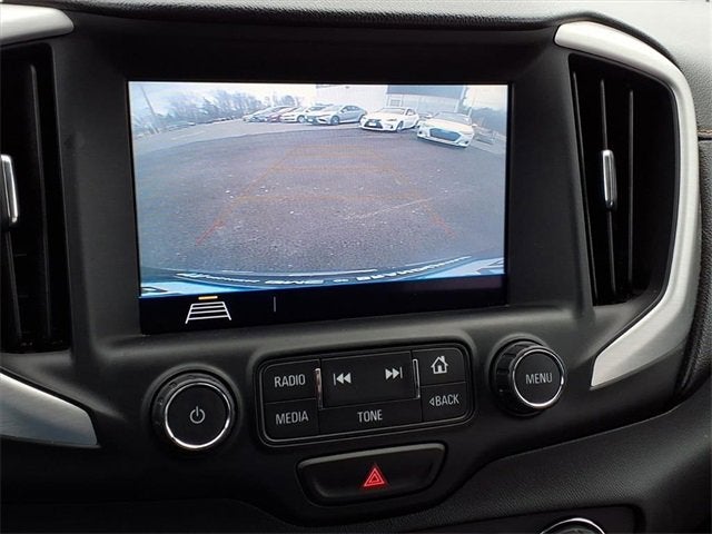2 USB Data Ports, 2 USB Data Ports w/Auxiliary Input Jack, 3.47 Axle Ratio, 4-Way Manual Front Passenger Seat, 4-Wheel Disc Brakes, 6 Speakers, 6-Speaker Audio System Feature, 8-Way Power Driver Seat Adjuster, ABS brakes, Air Conditioning, Alloy wheels, AM/FM radio: SiriusXM, Apple CarPlay/Android Auto, Auto-dimming door mirrors, Auto-dimming Rear-View mirror, Automatic temperature control, Bluetooth® For Phone, Brake assist, Bumpers: body-color, Compass, Delay-off headlights, Driver & Front Passenger Heated Seats, Driver door bin, Driver vanity mirror, Dual front impact airbags, Dual front side impact airbags, Electronic Stability Control, Emergency communication system: OnStar Guidance, Exterior Parking Camera Rear, Four wheel independent suspension, Front anti-roll bar, Front Bucket Seats, Front Center Armrest, Front dual zone A/C, Front fog lights, Front reading lights, Fully automatic headlights, Heated door mirrors, Heated front seats, High-Intensity Discharge Headlights, Illuminated entry, License Plate Front Mounting Package, Low tire pressure warning, Occupant sensing airbag, Outside temperature display, Overhead airbag, Overhead console, Panic alarm, Passenger door bin, Passenger vanity mirror, Perforated Leather-Appointed Seat Trim, Power door mirrors, Power Driver Lumbar Control, Power driver seat, Power steering, Power windows, Preferred Equipment Group 4SA, Radio data system, Radio: GMC Infotainment Audio System w/8 Display, Rear anti-roll bar, Rear seat center armrest, Rear window defroster, Rear window wiper, Remote keyless entry, Roof rack: rails only, SD Card Reader, Security system, SiriusXM Satellite Radio, Speed control, Speed-sensing steering, Split folding rear seat, Spoiler, Steering wheel mounted audio controls, Tachometer, Telescoping steering wheel, Tilt steering wheel, Traction control, Trip computer, Turn signal indicator mirrors, Variably intermittent wipers, Wheels: 18 x 7 Machined Aluminum w/Gray Accents.