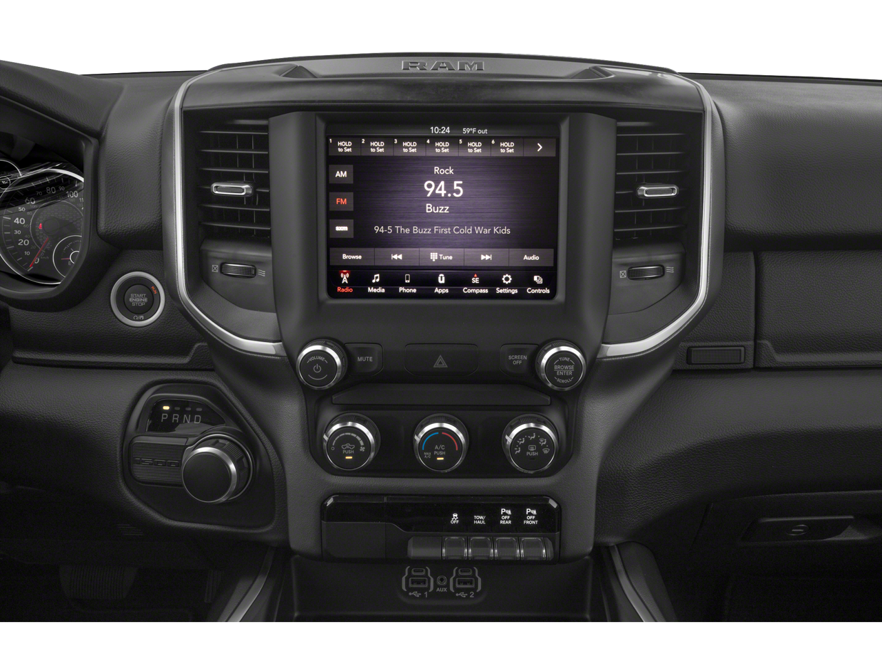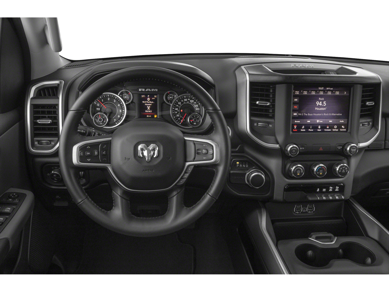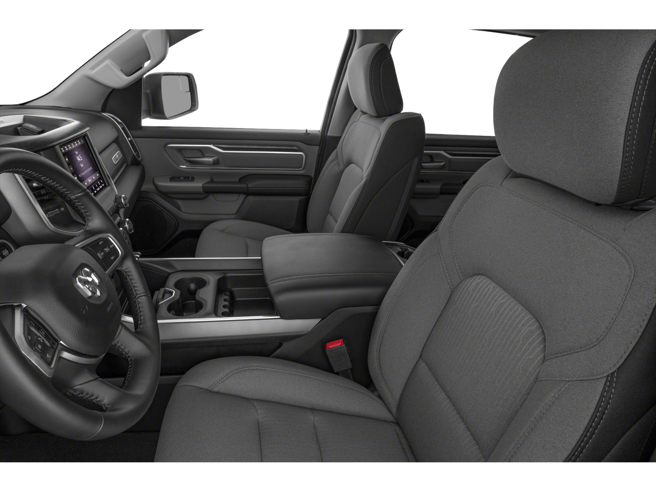 3 Rear Seat Head Restraints, 3.21 Rear Axle Ratio, 4 Way Front Headrests, 4-Wheel Disc Brakes, 48V Belt Starter Generator, 6 Speakers, ABS brakes, Air Conditioning, Alloy wheels, AM/FM radio, Auto-Dimming Rear-View Mirror, Big Horn IP Badge, Big Horn Level 1 Equipment Group, Brake assist, Bumpers: chrome, Class IV Receiver Hitch, Cloth Bench Seat, Cluster 3.5 TFT Color Display, Compass, Delay-off headlights, Driver door bin, Dual front impact airbags, Dual front side impact airbags, Electronic Stability Control, Exterior Mirrors w/Supplemental Signals, Foam Bottle Insert (Door Trim Panel), Front anti-roll bar, Front Center Armrest w/Storage, Front fog lights, Front reading lights, Front Seat Back Map Pockets, Front wheel independent suspension, Fully automatic headlights, Glove Box Lamp, GPS Antenna Input, Heated door mirrors, Illuminated entry, Leather steering wheel, Low tire pressure warning, Manufacturer's Statement of Origin, Occupant sensing airbag, Outside temperature display, Overhead airbag, Overhead console, Panic alarm, ParkSense Front/Rear Park Assist w/Stop, ParkView Rear Back-Up Camera, Passenger door bin, Passenger vanity mirror, Power 4-Way Driver Lumbar Adjust, Power 8-Way Driver Seat, Power Adjustable Pedals, Power door mirrors, Power Heated Fold Away Mirrors, Power steering, Power windows, Quick Order Package 27Z Big Horn/Lone Star, Radio data system, Radio: Uconnect 3 w/5 Display, Radio: Uconnect 4 w/8.4 Display, Rear 60/40 Folding Seat, Rear anti-roll bar, Rear Dome w/On/Off Switch Lamp, Rear Power Sliding Window, Rear seat center armrest, Rear step bumper, Rear Underseat Compartment Storage, Rear Window Defroster, Remote keyless entry, Remote Start System, Single Disc Remote CD Player, SiriusXM Satellite Radio, Speed control, Split folding rear seat, Steering Wheel Mounted Audio Controls, Sun Visors w/Illuminated Vanity Mirrors, Tachometer, Telescoping steering wheel, Tilt steering wheel, Traction control, Trip computer, Universal Garage Door Opener, Variably intermittent wipers, Voltmeter, Wheels: 18 x 8, Wheels: 20 x 9 Aluminum Chrome Clad.