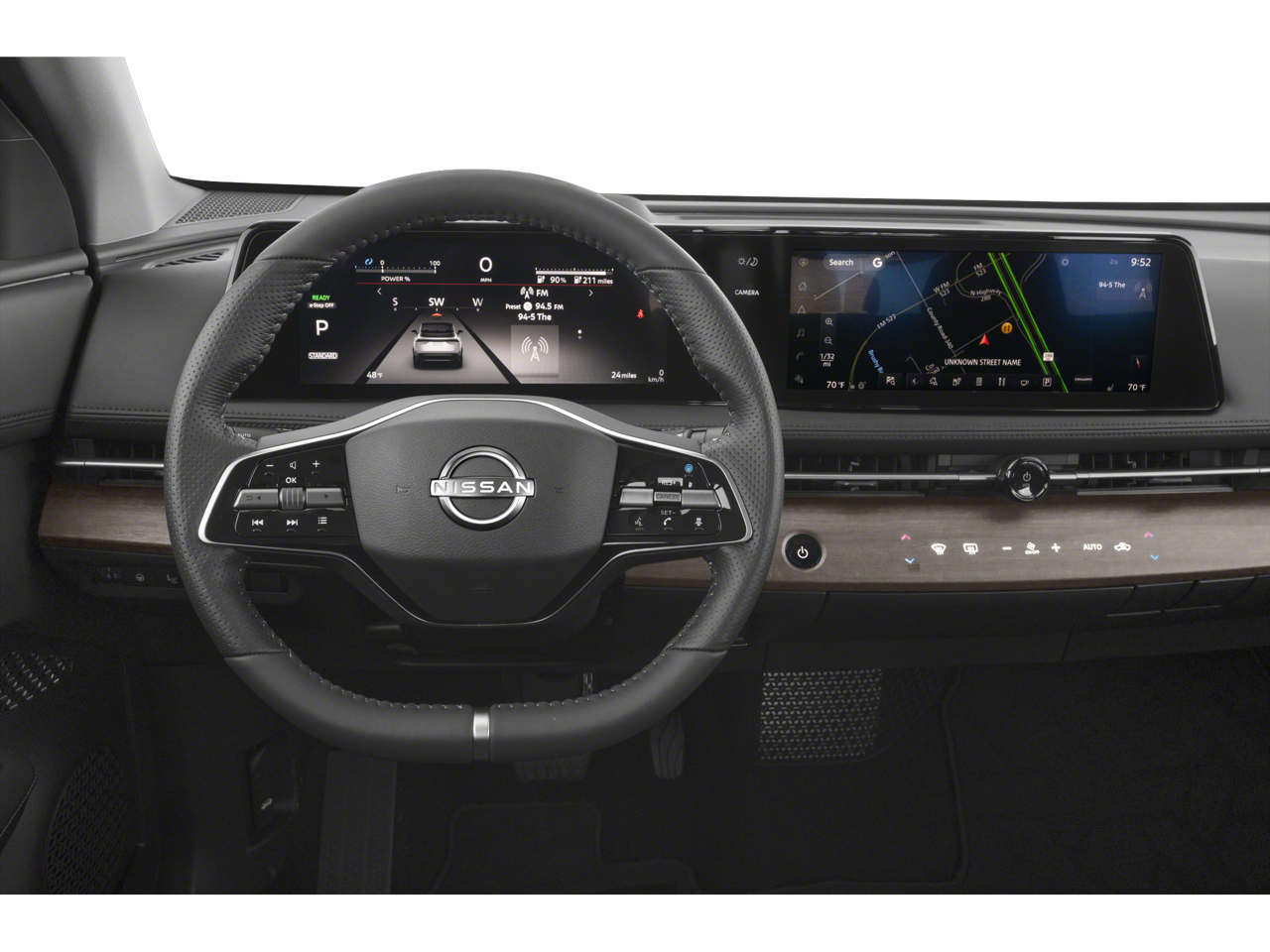 - Radio: NissanConnect EV w/Navigation -inc: AM/FM audio system, 6 speakers, 12.3" color display w/multi-touch control, wireless Apple CarPlay, wired Android Auto, NissanConnect Services, Bluetooth® hands-free phone system, SiriusXM satellite radio w/advanced audio features, SiriusXM Traffic and SiriusXM Travel Link